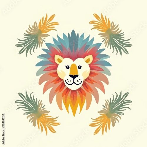 © Atralia13, Fototapeta premium Vibrant lion illustration pattern colorful background digital artwork creative environment whimsical concept