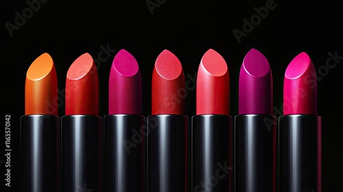 © Sirinya, Obraz premium Vibrant lipstick in a modern package, placed strategically with blank space for messages.