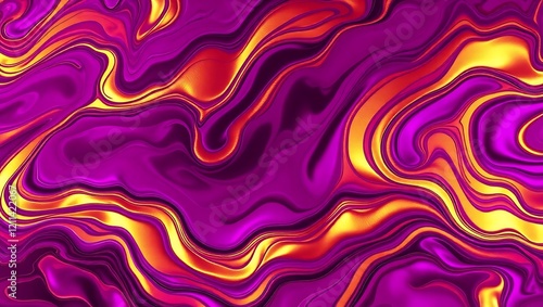 Fototapeta premium Vibrant liquid abstract background in purple and orange tones with bold...