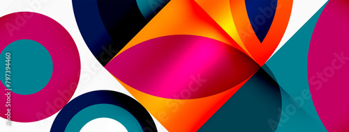 © antishock, Obraz premium Vibrant liquid magenta paints create a colorful abstract background with swirling circles and triangular petals, resembling a fluid water pattern on a white canvas
