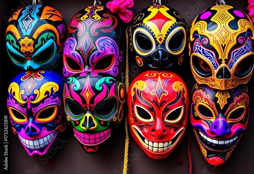 © Malee, Naklejka premium Vibrant lucha libre masks in various colors & styles, wrestling mask, colorful