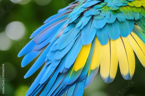 © volga, Obraz premium Vibrant macaw feathers in close-up detail