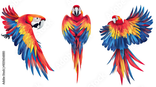 © Johnathan, Obraz premium Vibrant Macaw Illustrations on Transparent Background Generative AI