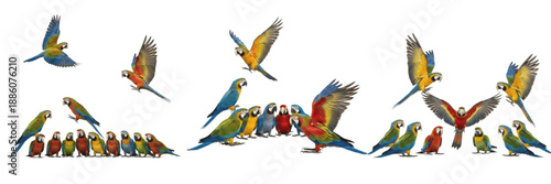 Obraz premium Vibrant Macaw Parrot Flock Illustration Set