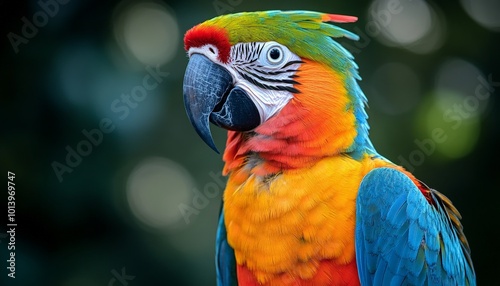 Obraz premium Vibrant Macaw Parrot with Colorful Feathers in a Tropical Paradise