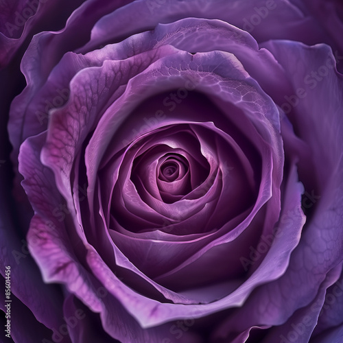 © Vilma, Obraz premium Vibrant Macro Shot of a Purple Rose in Full Bloom, Close-Up View of flower