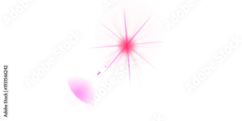 Fototapeta premium Vibrant magenta lens flare starburst effect on black background glowing pink...