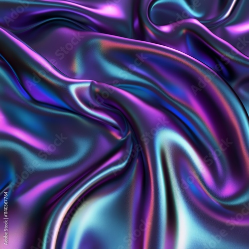 © Thanawin, Obraz premium Vibrant metallic fabric texture with purple and blue hues creating a mesmerizing abstract pattern.