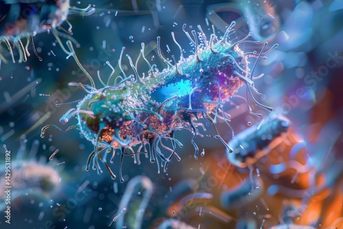 © Ilia, Obraz premium Vibrant microscopic bacteria close-up