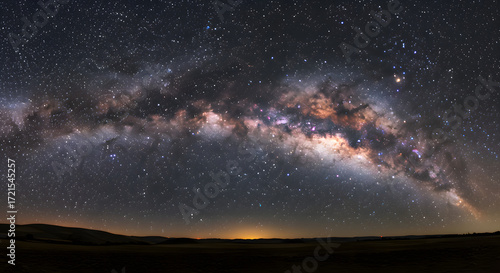 Fototapeta premium Vibrant Milky Way Across Dark Night Sky Above Landscape