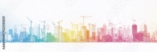 Fototapeta premium Vibrant minimalistic city skyline with cranes symbolizing growth and...