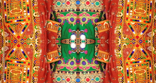 © Valeriia Zub, Fototapeta premium Vibrant Mirror Symmetry Traditional Indian Textiles Full Frame