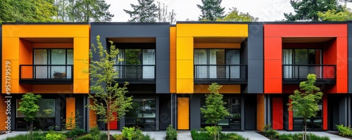 Naklejka premium Vibrant Modern Townhouses with Colorful Facades