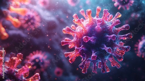 Fototapeta premium Vibrant Molecular Structure of a Virus Particle Against a Dark Background