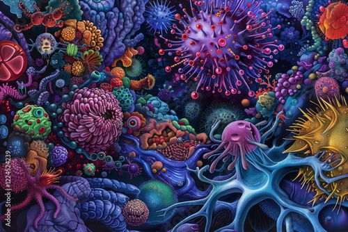 © mehaniq41, Obraz premium Vibrant molecular world in cosmic hues. Neural network AI generated