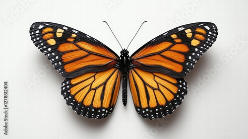 © Idea Library, Fototapeta premium Vibrant monarch butterfly displaying its stunning orange and black wings against a pure white background