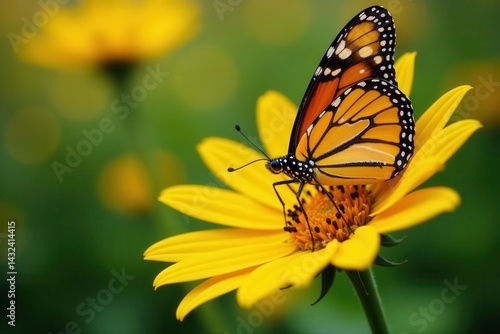 Fototapeta premium Vibrant monarch butterfly perched on a bright sunflower , black, monarch
