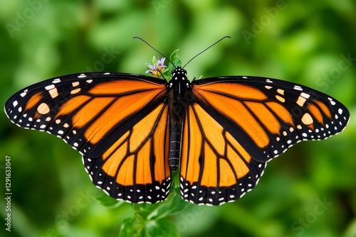 © mohdfaizal, Naklejka premium Vibrant Monarch Butterfly Perched on Green Foliage in Nature