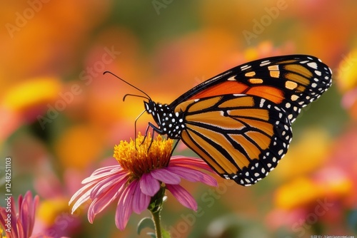 © Jovicic, Naklejka premium Vibrant monarch butterfly resting on colorful flower