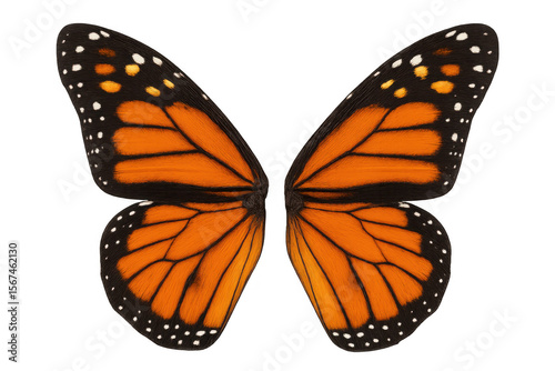 Fototapeta premium Vibrant monarch butterfly wings showcase intricate patterns and transparent background, perfect for nature-themed projects