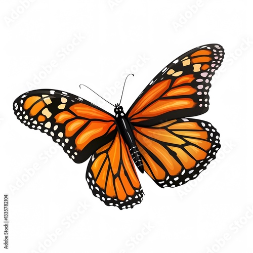 © Nhoeb, Obraz premium Vibrant Monarch Butterfly with Detailed Wings on White Background