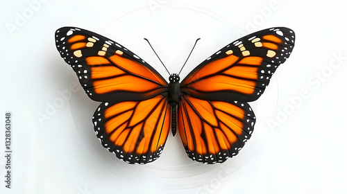 Fototapeta premium Vibrant Monarch Butterfly with Orange and Black Wings on White Background