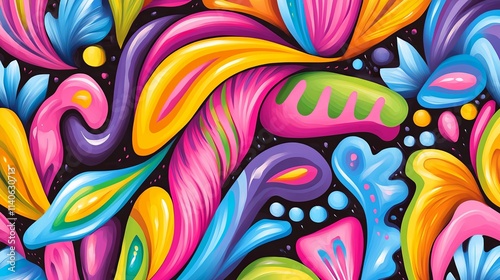 © Nuntapuk, Obraz premium Vibrant Monochrome Hand-Drawn Patterns