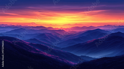 © AbdulHakim, Fototapeta premium Vibrant mountain sunrise over misty valley