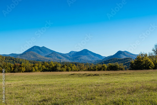 Fototapeta premium Vibrant mountains stretch across a clear blue sky in a serene landscape...
