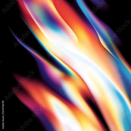 © ba, Naklejka premium Vibrant, Multicolored Flames Against a Dark Background