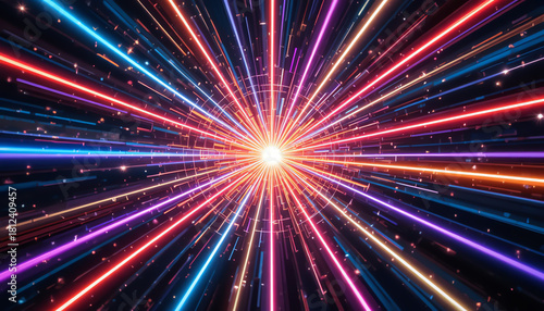 © Amazing Stock, Fototapeta premium Vibrant Multicolored Light Tunnel with Radial Streaks and Sparkles