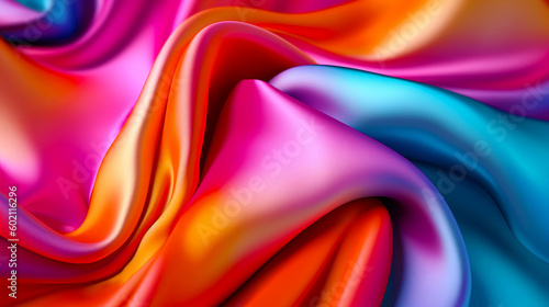Obraz premium Vibrant multicolour silk satin fabric texture background with sweeping ripples and folds. A.I. generated.