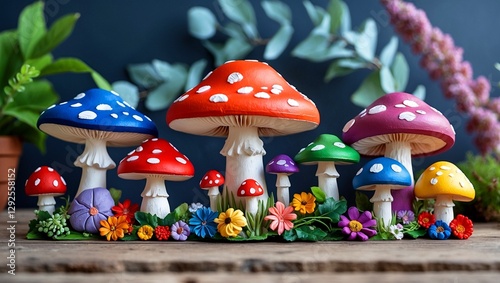 Obraz premium Vibrant mushroom figurines for creative craft projects