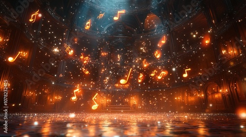 Obraz premium Vibrant musical notes floating over a sparkling hall