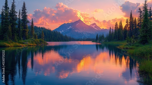 Fototapeta premium Vibrant National Park Landscape at Sunset - Image 4 of 12 - 5824 x 3264 19MP - created by AI