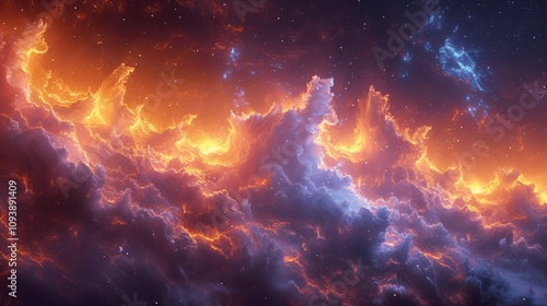 Naklejka premium Vibrant Nebula Galaxy in Space with Cosmic Clouds and Stars