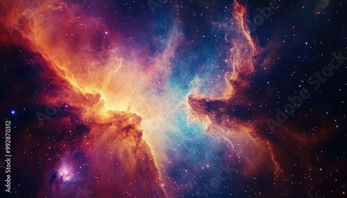 Fototapeta premium Vibrant nebula in a starry outer space setting with colorful cosmic elements