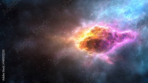© Narin, Fototapeta premium Vibrant Nebula in Deep Space Cosmic Clouds of Orange, Pink and Blue