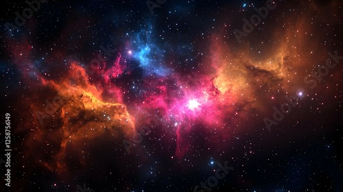 Fototapeta premium Vibrant Nebula in Deep Space with Red, Blue, and Orange Hues