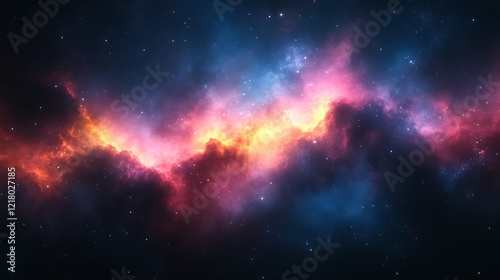© Babang, Fototapeta premium Vibrant nebula in deep space with red, orange, and blue hues.