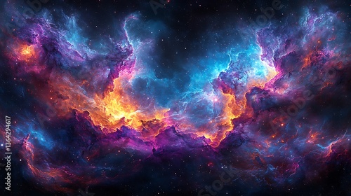© Alam, Fototapeta premium Vibrant nebula with cosmic dust and gas.