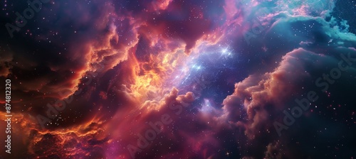 Naklejka premium Vibrant Nebula with Stars: Cosmic Fantasy