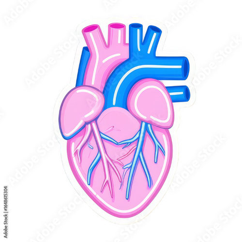 Fototapeta premium Vibrant Neon Anatomical Heart Sticker Illustration in Pink and Blue