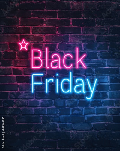 Obraz premium Vibrant Neon "Black Friday" Sign Against Dark Brick Wall