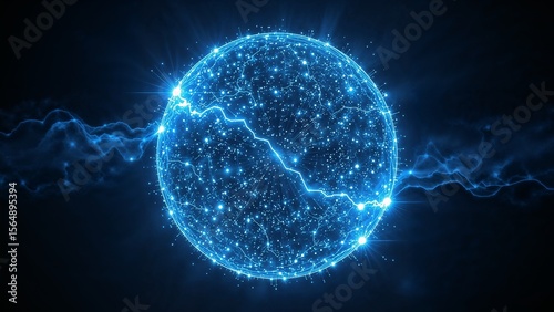 Obraz premium Vibrant neon blue energy sphere of glowing particles