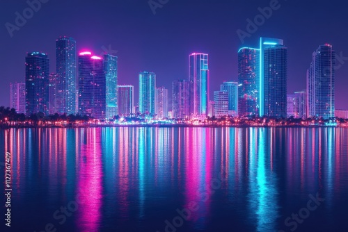 Fototapeta premium Vibrant Neon City Skyline at Dusk