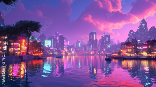 Obraz premium Vibrant Neon Cityscape at Dusk