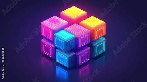 Obraz premium Vibrant Neon Cubes Composition Representing Digital Connectivity and AI...