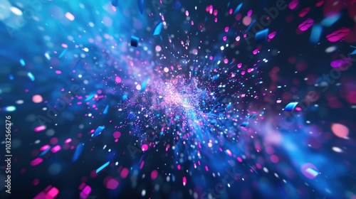 Fototapeta premium Vibrant Neon Fireworks and Confetti on a Midnight Blue Sky for Festive New...