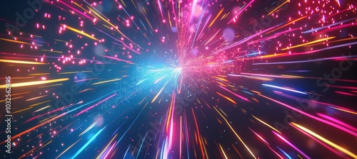 © spyrakot, Fototapeta premium Vibrant Neon Fireworks Display for Dynamic New Year's Celebration Poster Design